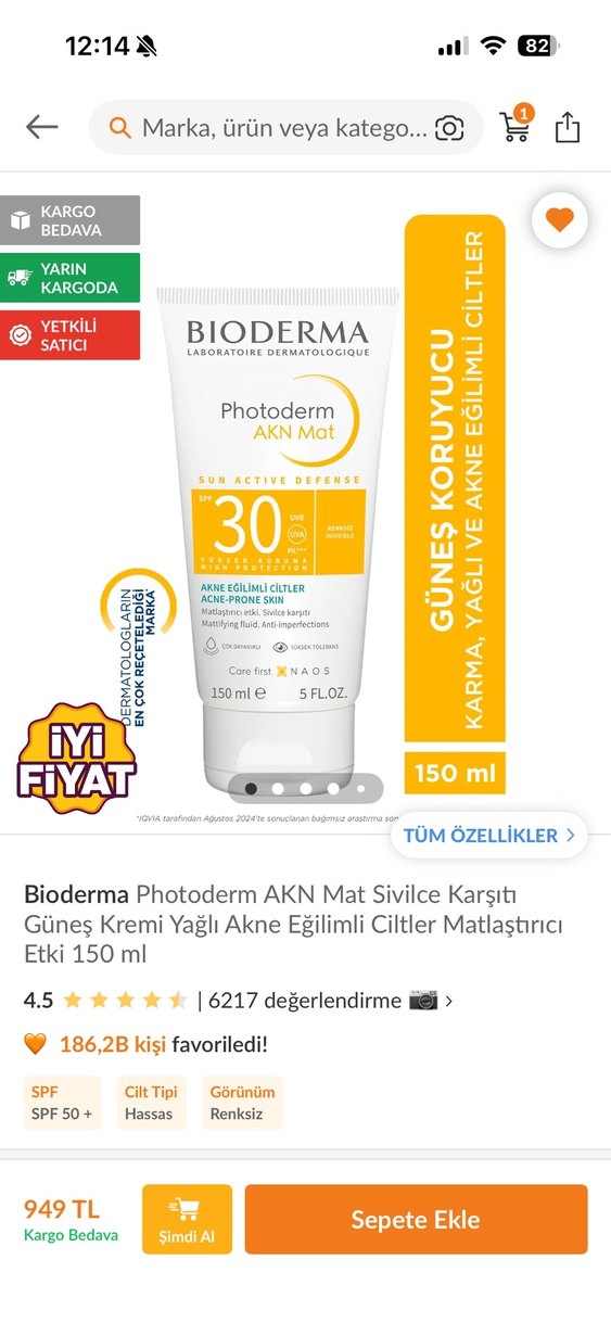 3 kez kullandım neredeyse fulldür. Bioderma Photoderm AKN Mat SPF 30, yağlı ve akne eğilimli ciltler için güneş koruyucu kremdir. Matlaştırıcı etkisiyle parlaklığı kontrol eder ve cildi güneşten korur. 150 ml.