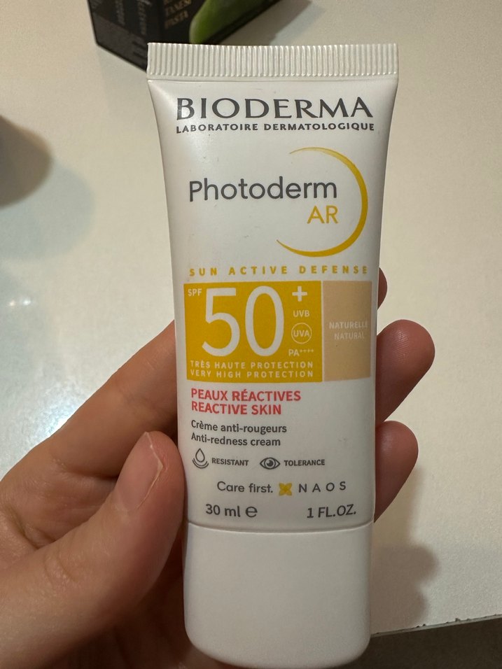 Bioderma Photoderm AR SPF 50+ krem, hassas ve reaksiyona eğilimli ciltler için çok yüksek koruma sağlar, 30 ml tüptedir. 1 kere denemek amaçlı kullanıldı eczane ürünüdür orijinaldir .
