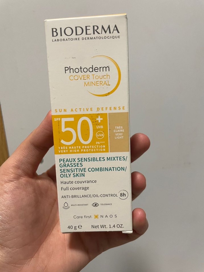 Bioderma Photoderm Cover Touch Mineral SPF 50, hassas karma ve yağlı ciltler için çok yüksek güneş koruması sunar. 8 saat boyunca tam kapatıcılık ve yağ kontrolü sağlar. 40g ağırlığındadır. ☀️