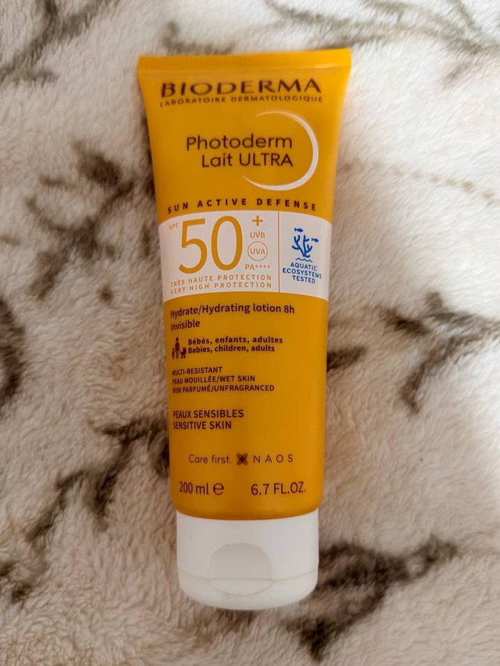 Bioderma Photoderm Lait Ultra SPF 50+ yüksek koruma sağlar, hassas ciltler için 8 saat nemlendirici losyon içerir
