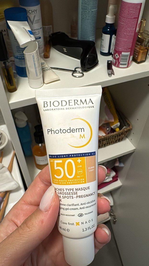 Bioderma Photoderm M SPF 50, UV ve mavi ışığa karşı yüksek koruma sağlar. Hamilelikte oluşan lekelerin önlenmesine ve azaltılmasına yardımcı olan hafif jel-kremdir. Suya dayanıklıdır.