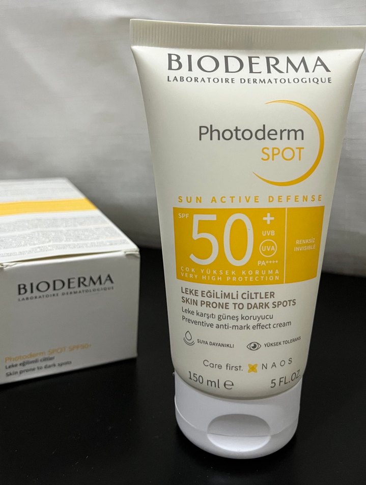 Bioderma Photoderm Spot 150ml, SPF 50+ çok yüksek koruma sağlar. Leke eğilimli ciltler için güneş lekelerine karşı önleyici etkili kremdir. Suya dayanıklı ve hassas ciltlere uygundur. ☀️
