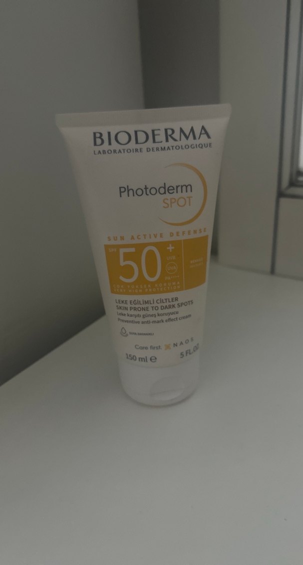 Bioderma Photoderm Spot SPF 50, leke eğilimli ciltler için yüksek koruma sağlar. Hafif yapısıyla pigmentasyon oluşumunu önlemeye yardımcı olur. 150 ml tüpte sunulur. ☀️