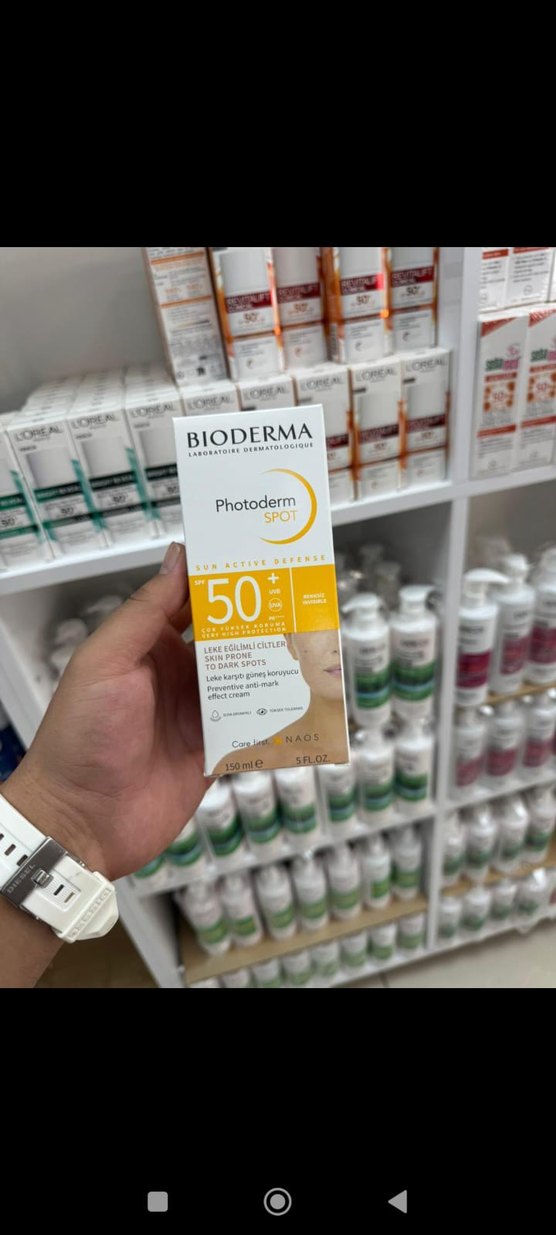 Bioderma Photoderm Spot SPF 50+ yüksek koruma sağlar ve koyu lekelerin oluşumunu engeller. 150 ml boyuttadır. ☀️