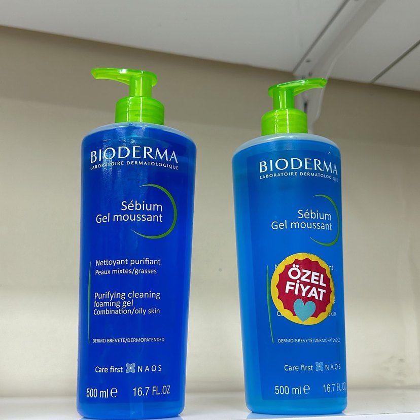Bioderma Sébium, karma ve yağlı ciltler için arındırıcı köpüren temizleyici jel, 500 ml pompalı şişede.