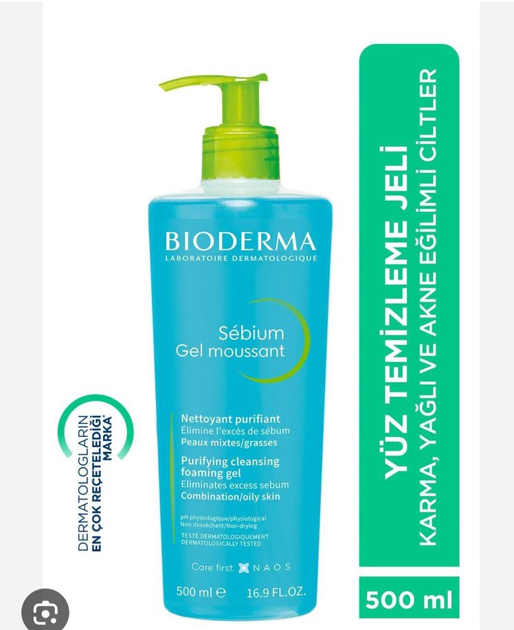 Bioderma Sebium, karma ve yağlı ciltler için fazla sebumu gideren ve akne oluşumunu engellemeye yardımcı köpüren yüz temizleme jelidir. 500 ml.