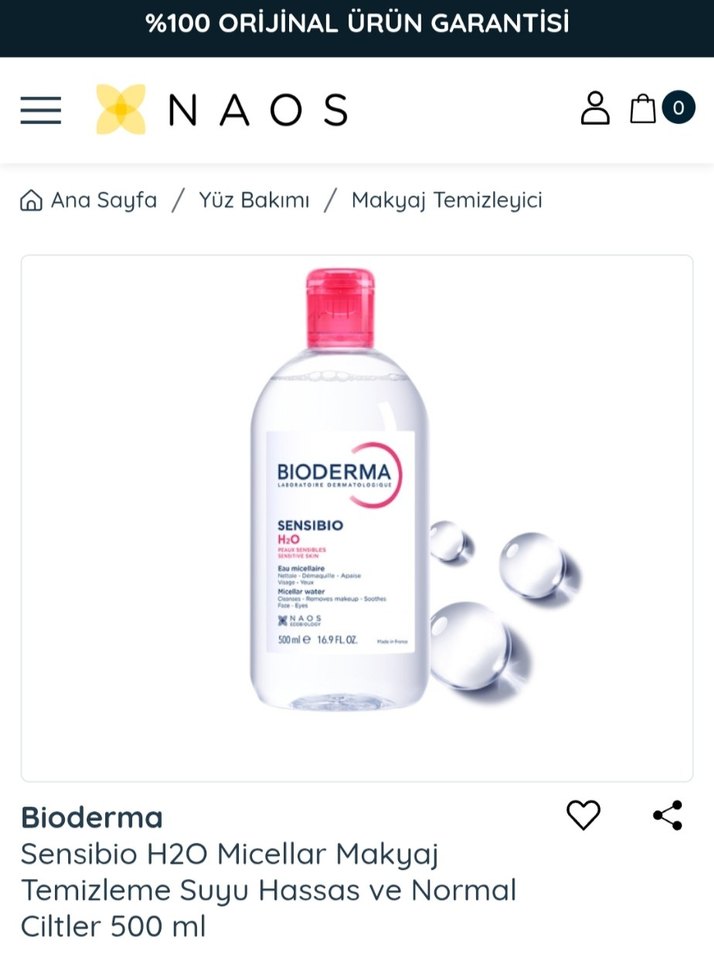 Bioderma Sensibio H2O micellar su, hassas ve normal ciltler için makyajı ve kiri nazikçe temizler. 500 ml şişede sunulur.