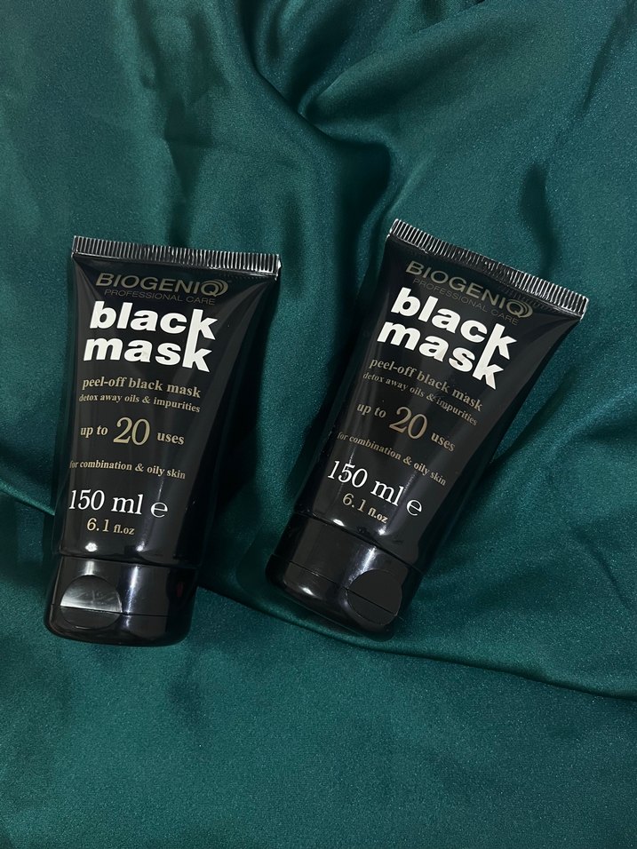 Biogeniq siyah peeling maskesi, karma ve yağlı ciltler için hurma çekirdeği yağı ve kir arındırıcı içerir. 150 ml,