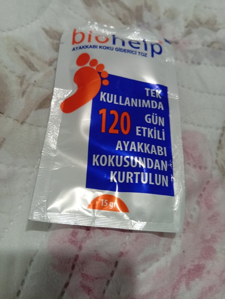 Biohelp ayakkabı kokusu giderici toz, tek kullanımlık 15 gramlık paketle 120 gün etkili koku giderir.