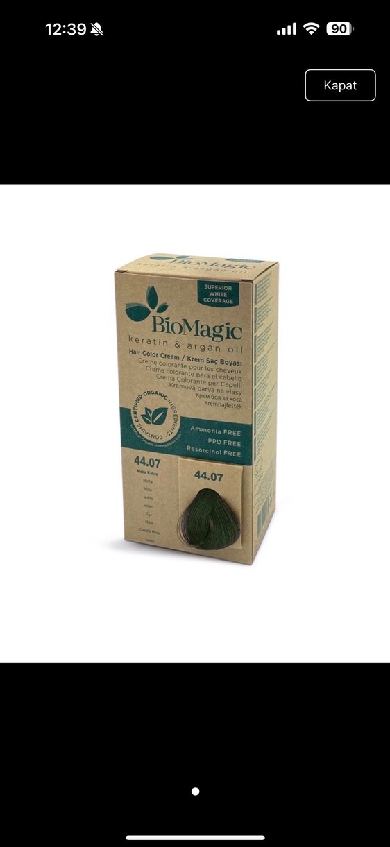 Keratin ve argan yağı içeren BioMagic saç boyası, amonyak, PPD ve rezorsinol içermez. Organik formülüyle sağlıklı ve üstün beyaz kapama sağlar.