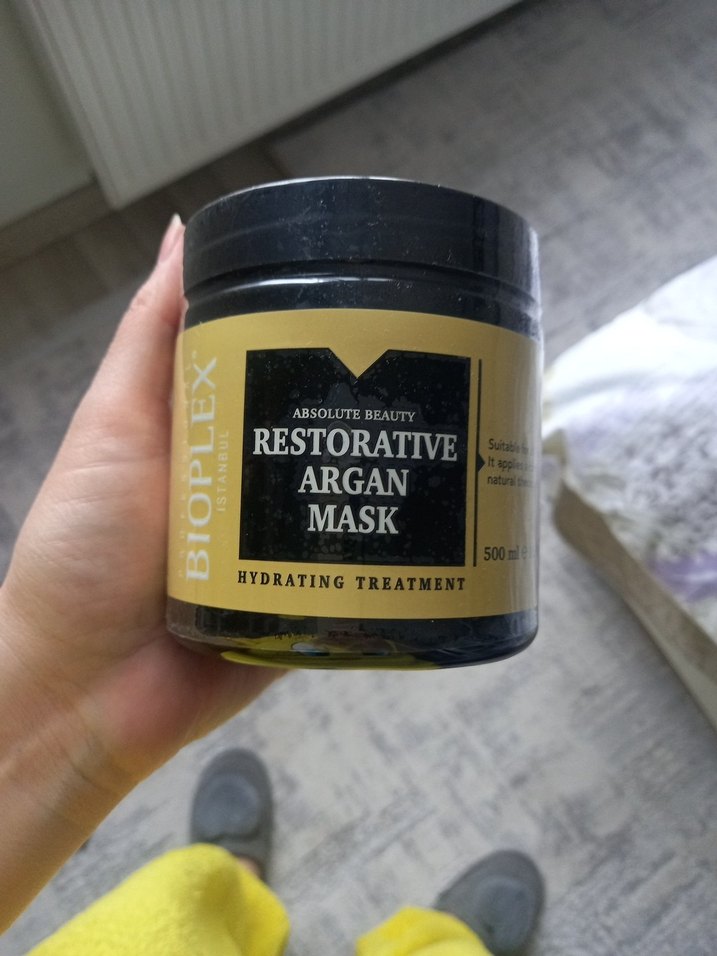 Bioplex Argan Onarıcı Saç Maskesi, argan yağı ile saçları nemlendirir ve onarır. 500 ml boyutundadır. ♀️