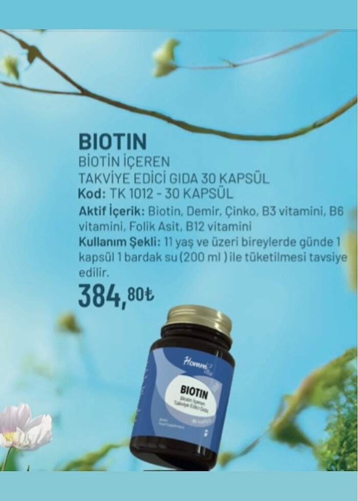 Homm Bitkisel Biotin İçeren Takviye Edici Gıda