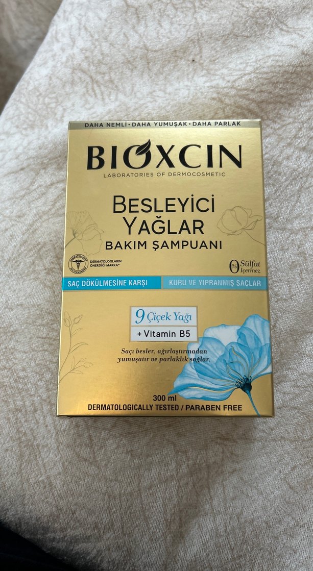 Bioxcin 9 çiçek yağı ve Vitamin B5 içeren kuru ve yıpranmış saçlar için besleyici bakım şampuanı. Saç dökülmesine karşı korur, saçları yumuşak ve parlak yapar. Dermatolojik olarak test edilmiştir.