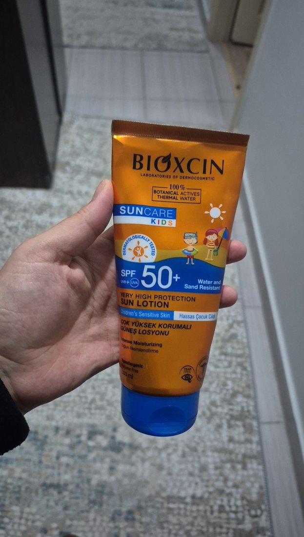 Bioxcin Kids SPF 50+ güneş kremi, çocukların hassas cildi için çok yüksek koruma sağlar. Suya ve kuma dayanıklıdır, bitkisel özler ve termal su içerir. ☀️yaklaşık %20 si kullanılmış
