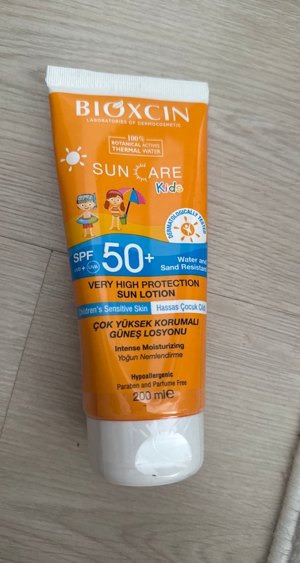 Bioxcin SPF 50+ güneş losyonu, çocukların hassas cildi için çok yüksek koruma ve yoğun nemlendirme sağlar. Suya ve kuma dayanıklıdır, hipoalerjenik, paraben ve parfüm içermez.