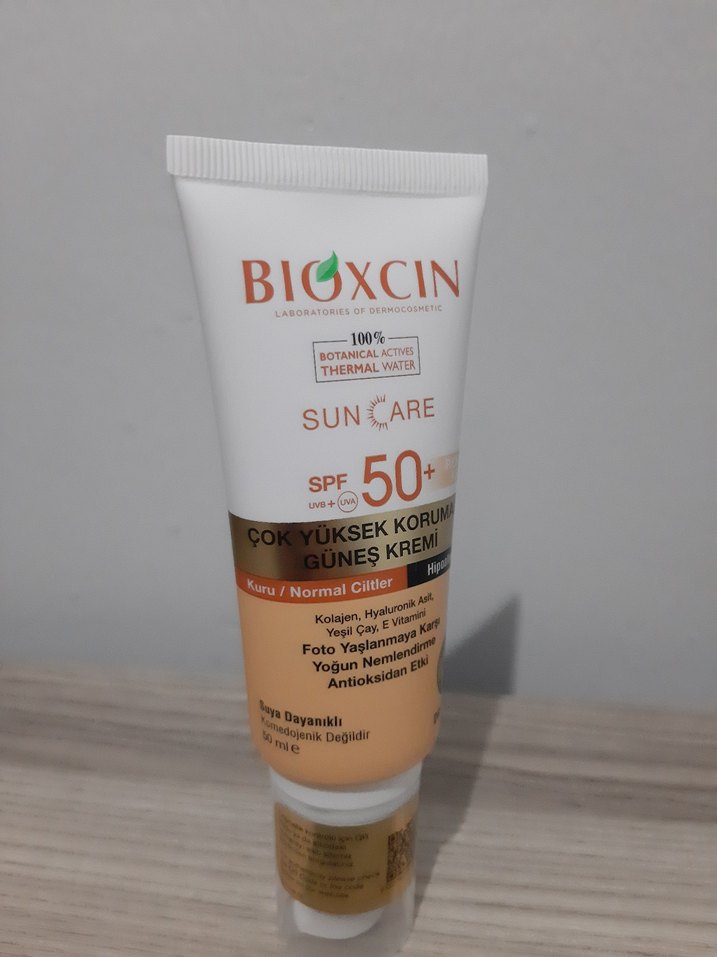 BIOXCIN SPF 50+ çok yüksek koruma sağlayan güneş kremi, kuru ve normal ciltler için uygundur. Kolajen, hyaluronik asit ve yeşil çay özleri içerir. Foto yaşlanmaya karşı korur, cildi nemlendirir. Suya dayanıklı değildir. ☀️