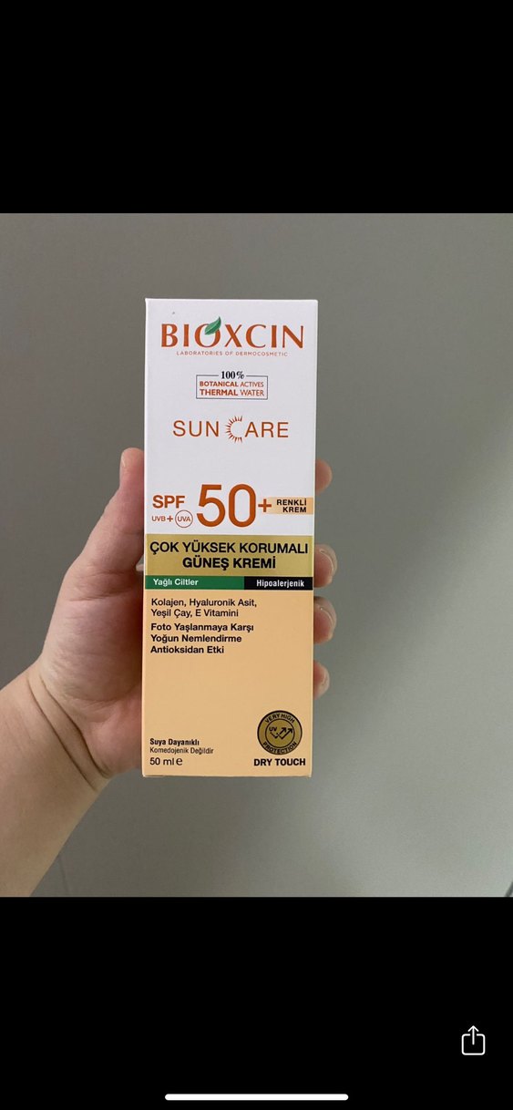 Bioxcin güneş kremi, SPF 50+ ile çok yüksek koruma sağlar. Kolajen, hyaluronik asit, yeşil çay ve E vitamini içerir. Antioksidan etkili, yoğun nemlendirir, yağlı ciltler için uygundur- ürün orijinaldir ve açılmamıştır