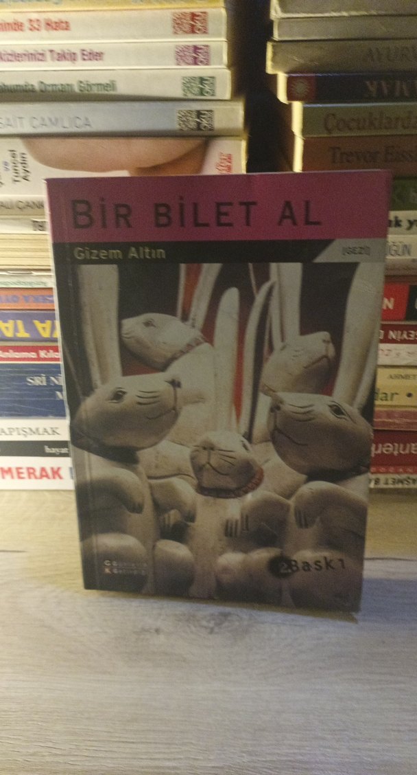 Gizem Altın'ın "Bir Bilet Al" adlı romanı, ikinci baskısıyla okuyucusunu etkileyici bir hikayeye davet ediyor. Kitap kapağında soyut figürler yer alıyor.
