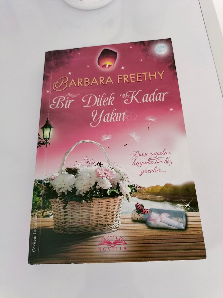 Barbara Freethy'nin "Bir Dilek Kadar Yakın" romanı, çiçek sepeti, ışıklı fener ve rüya gibi gece gökyüzüyle romantik bir kapak sunuyor. Hikaye, hayallerin gerçekleşme şansını anlatıyor.