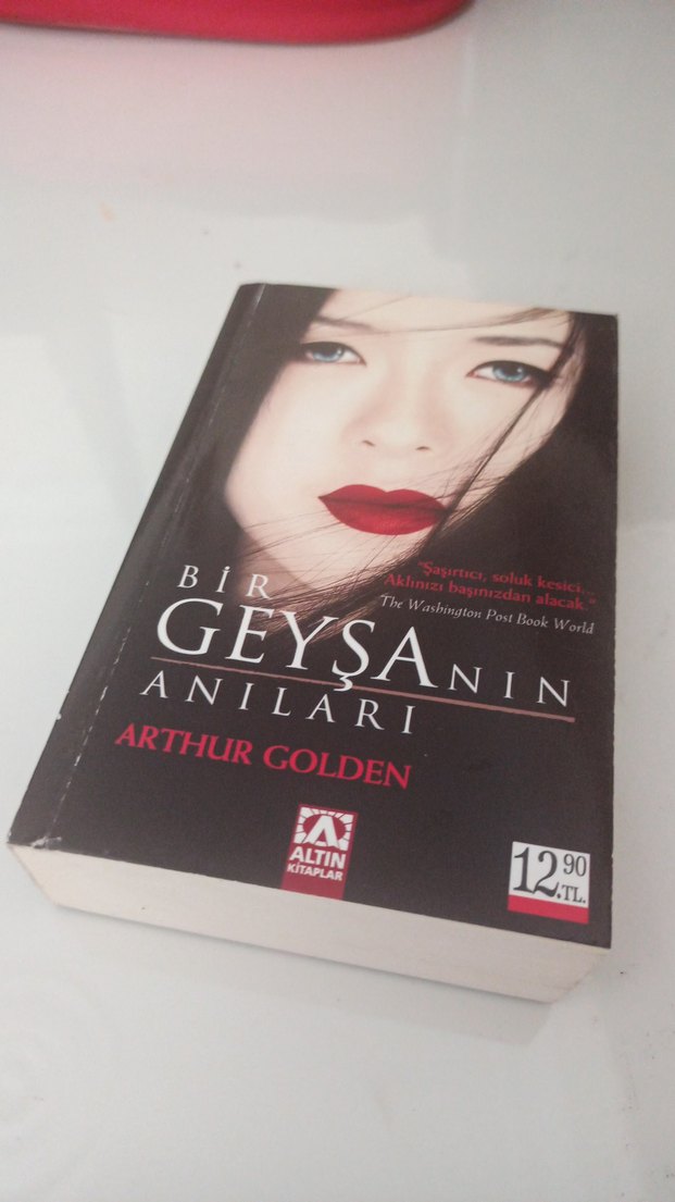 Arthur Golden'ın 'Bir Geyşanın Anıları' adlı romanı, Altın Kitaplar tarafından yayımlanmıştır. Kapakta kırmızı dudaklı bir kadının yüzü yer almaktadır.