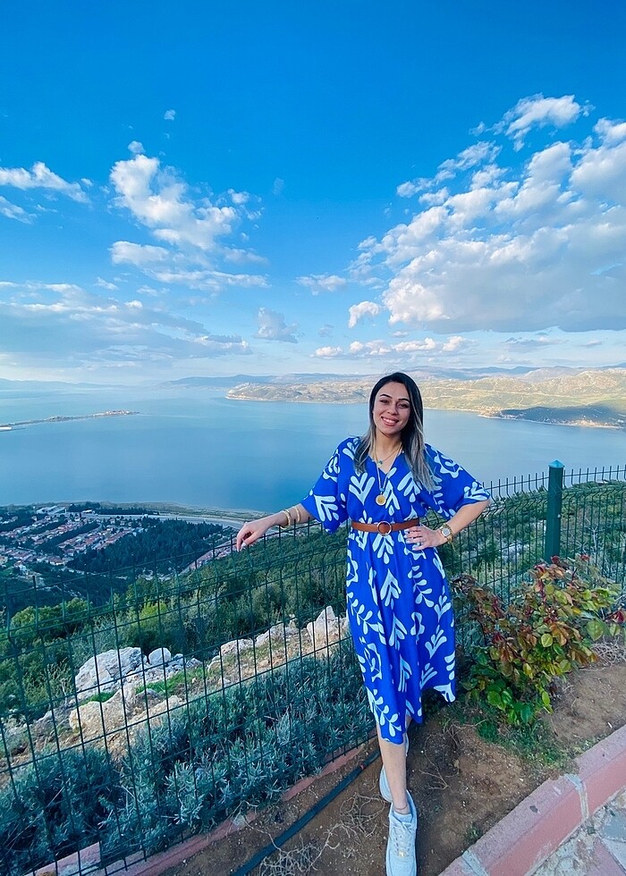 Mavi desenli elbise