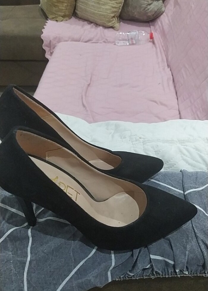 Baret 36 numara yüksek ökçe süet siyah şık ayakkabı birkere mezuniyet töreninde kullanildi