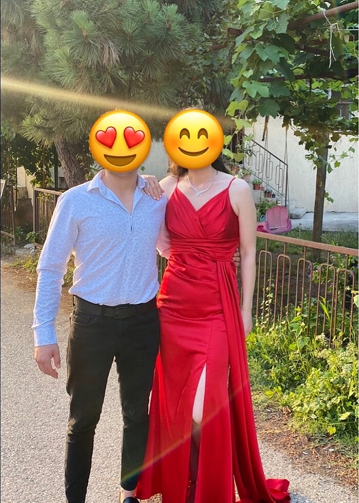 Bir kez giyilmiş, kırmızı yırtmaçlı abiye