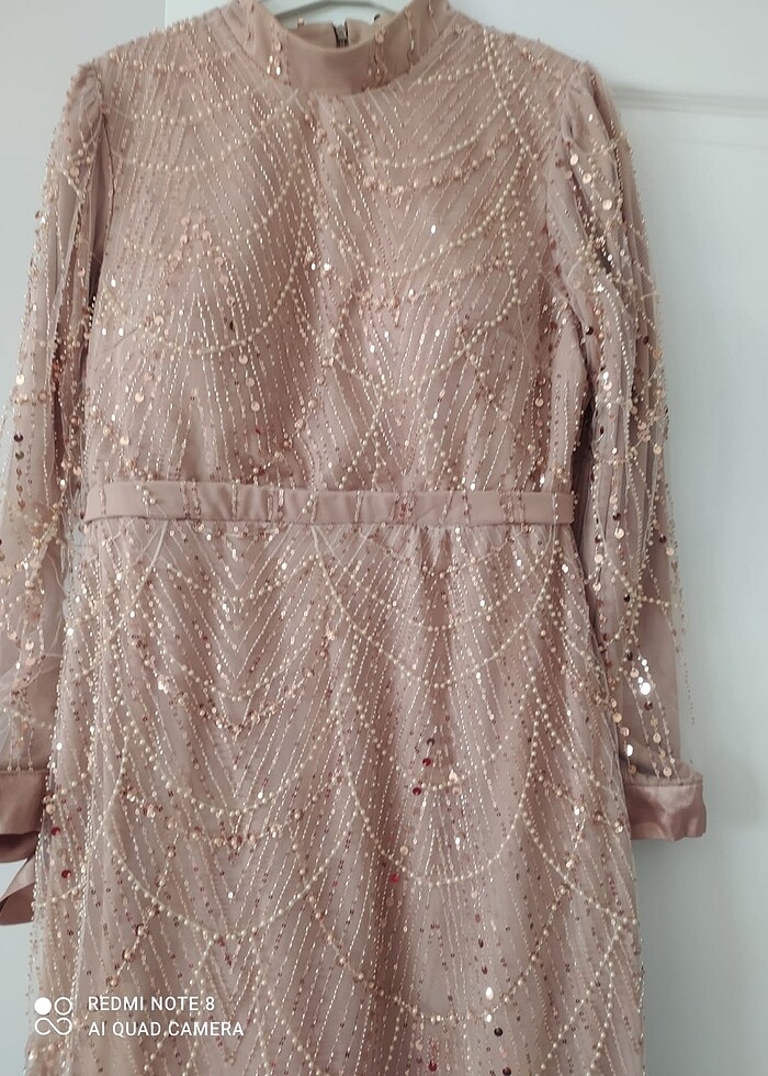 Taşlı bej abiye