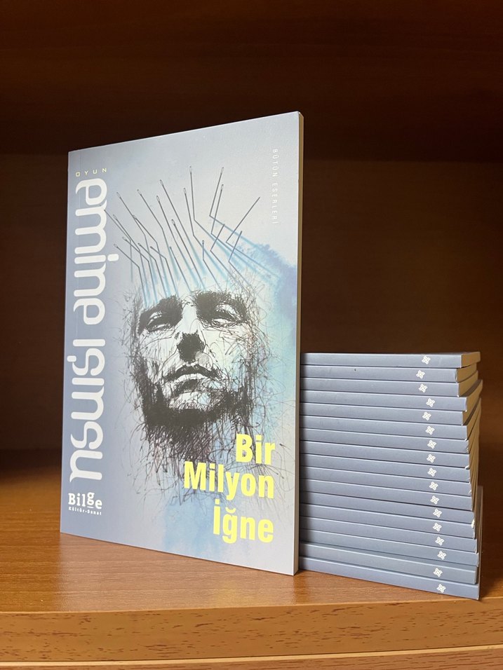 Emine Işınsu’nun "Bir Milyon İğne" adlı romanı, kapağında iğne çizgileriyle yoğun bir yüz tasviri yer alıyor.