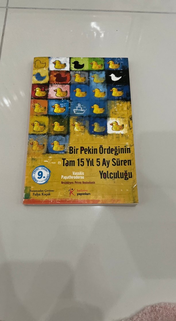 Vassilis Papatheodorou'nun yazdığı, Fulya Koçak'ın çevirdiği "Bir Pekin Ördeğinin Tam 15 Yıl 5 Ay Süren Yolculuğu" kitabı.