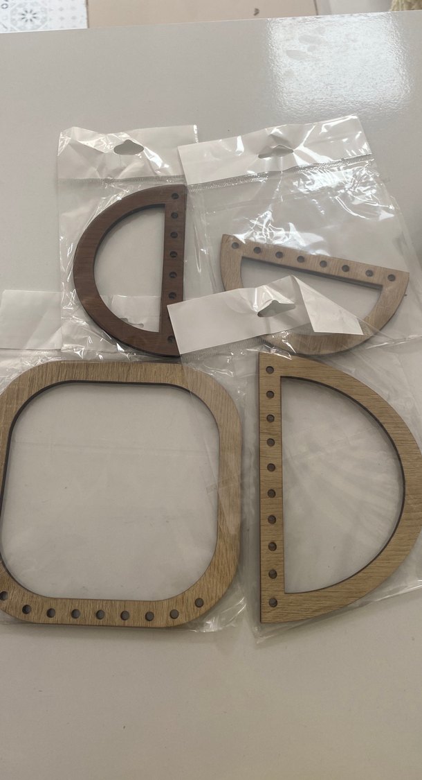 Bej ve gri tonlarda, farklı şekillerde kenarlarında delikler bulunan ahşap çerçeve seti. ️