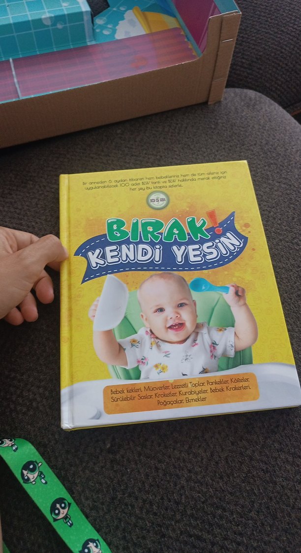 Bebeklerin kendi yemesini teşvik eden, bebek yiyeceklerinin yer aldığı çocuk kitabı. Kapakta mutlu bir bebek var