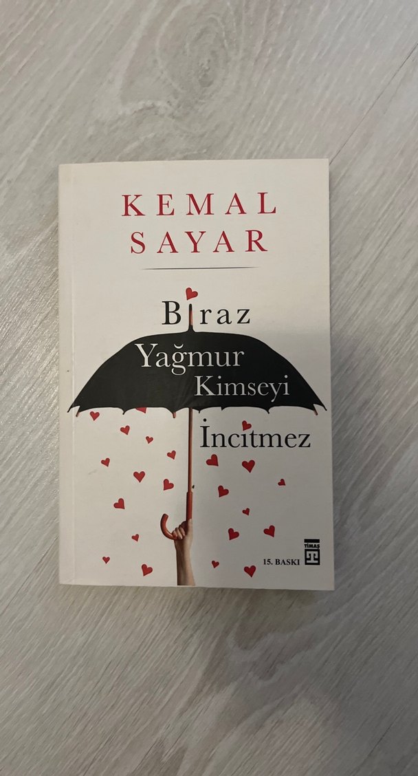 Kemal Sayar'ın "Biraz Yağmur Kimseyi Incitmez" romanı, şemsiye ve düşen kalplerle duygusal bir atmosfer sunuyor.