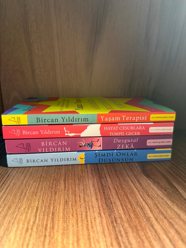 Bircan Yıldırım'ın Yaşam Terapisi, Hayat Cesurlara Torpil Geçer, Duygusal Zeka ve Şimdi Onlar Düşünsün kişisel gelişim kitaplarından oluşan 4 kitaplık set. Şimdi Onlar Düşünsün kitabı Bircan Yıldırım tarafından imzalı, mühürlü ve 4 niyet kartı içinde.
