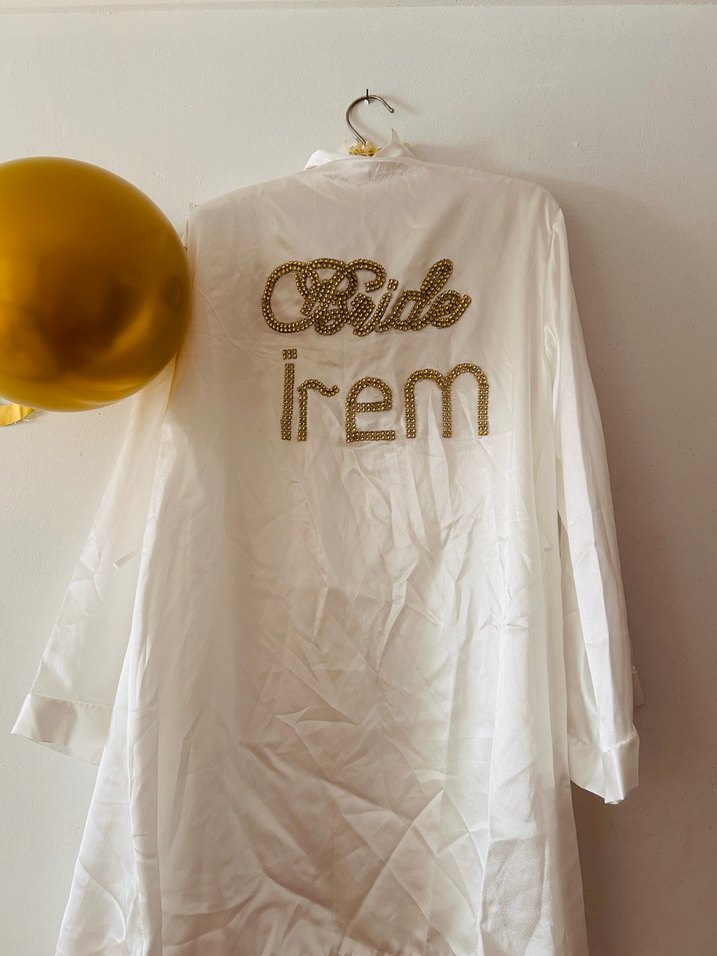 Beyaz, uzun kollu ve bol kesim bohem tarzda, parlak ve baskılı midi uzunlukta kadın sabahlık. Arkasında "Bride İrem" yazısı bulunur. Bir kez çekimde giyildi sadece yelpaze ile vereceğim