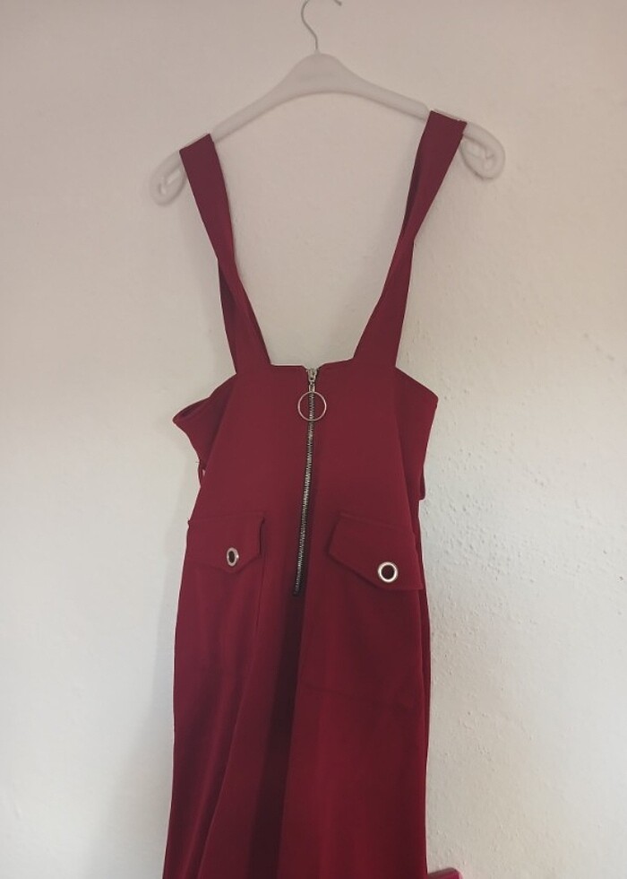 Kirmizi askılı fermuarlı etek