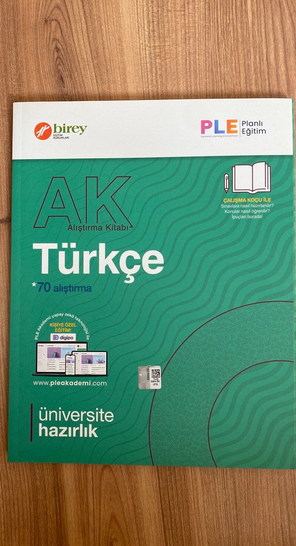 Birey AK Türkçe çalışma kitabı, planlı eğitimle 70 alıştırma içeren üniversite hazırlık kitabıdır.
