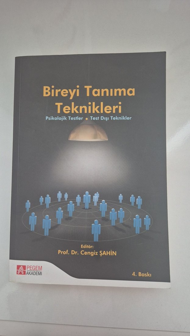 Bireyi tanıma teknikleri, psikolojik testler ve test dışı yöntemleri içeren, Prof. Dr. Cengiz Şahin editörlüğünde 4. baskı kitap. Tertemiz, yeni gibi