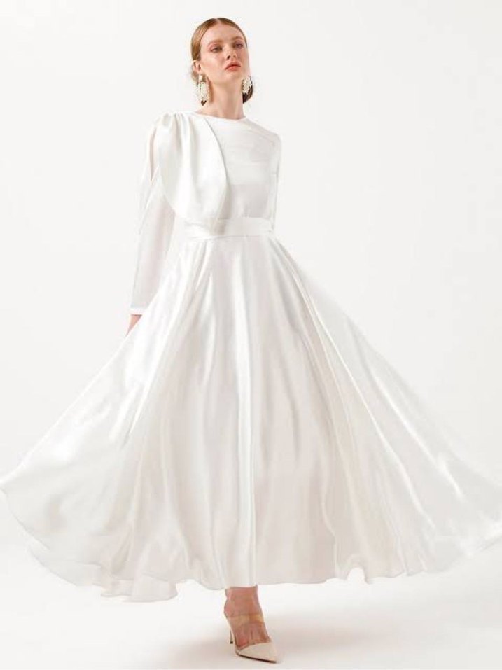 Uzun beyaz gelinlik,elbise. uzun kollu. 165 boy 55 kilo ile giydim