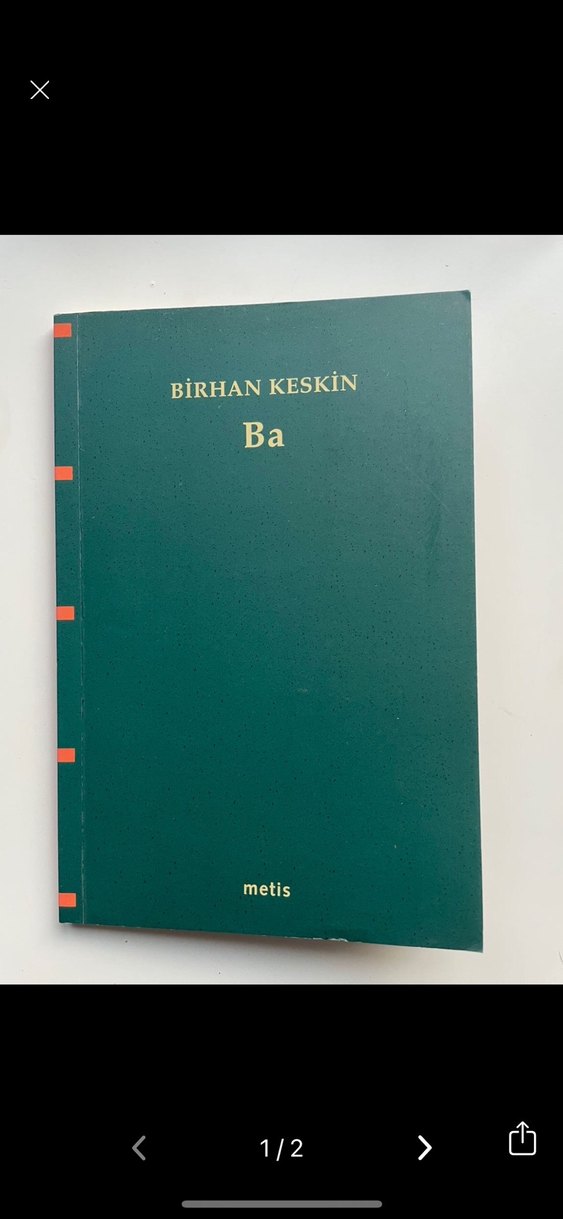 Birhan Keskin'in "Ba" adlı şiir kitabı, Metis yayınevi tarafından basılmış, sade yeşil kapak ve altın yaldızlı yazılar içerir.