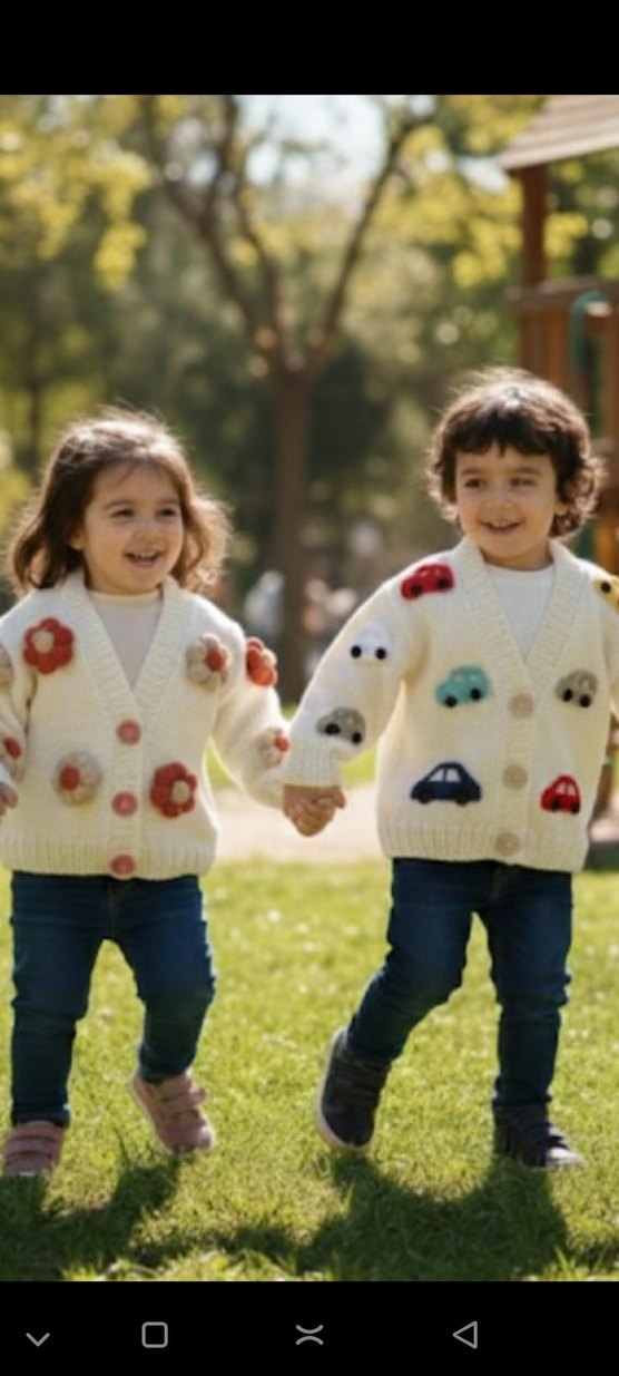 Biri araba diğeri ise çiçek detaylı sıcacık hırka her renk örüyorum sipariş aliyorum