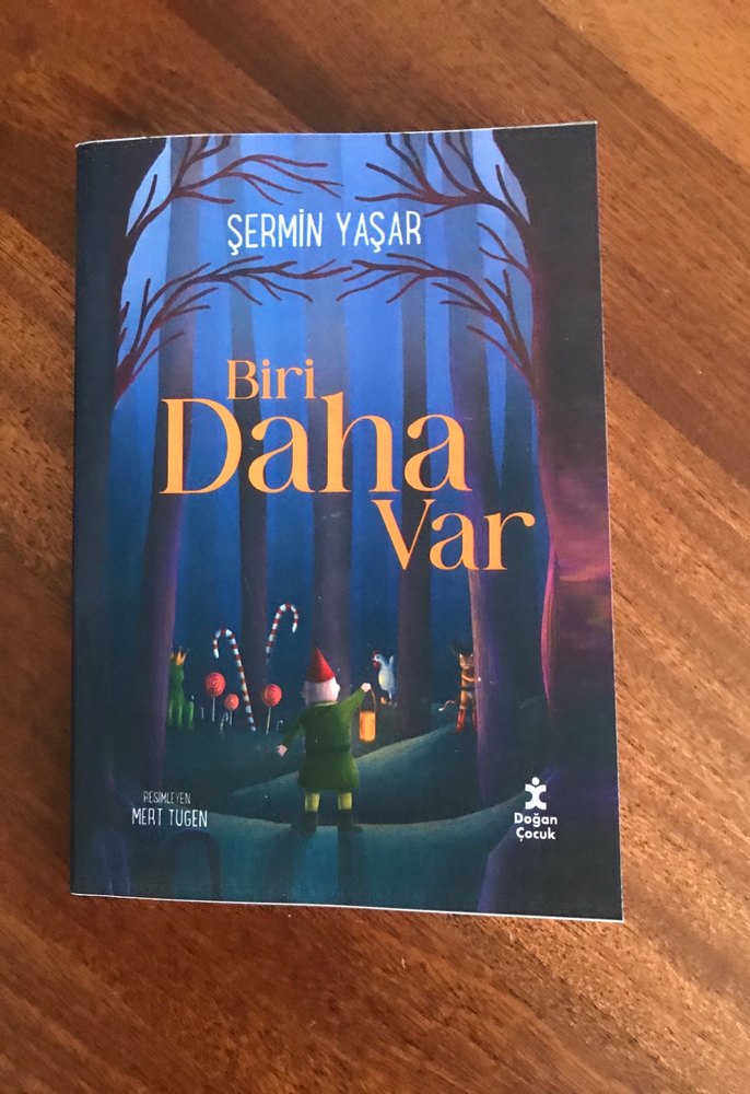 Şermin Yaşar'ın yazdığı, Mert Tugen'in resimlediği "Biri Daha Var" çocuk kitabı. Kapakta sihirli bir orman sahnesi var.