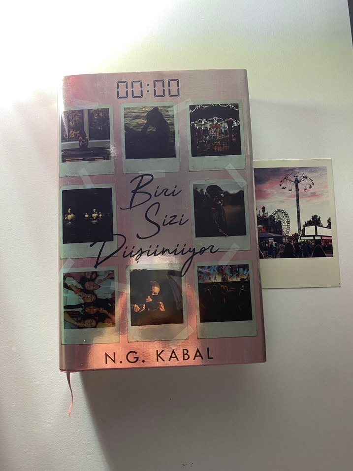 N.G. Kabal'ın "Biri Sizi Düşünüyor" adlı romanı, dijital saat ve fotoğraf çerçeveleriyle kaplanmış bir kapak tasarımına sahiptir. Kitapta hasar yoktur. Ayracı mevcuttur.