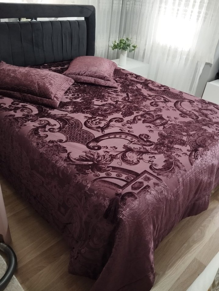 Bordo renginde,yatak örtüsü Birkaç kez kullanıldı yepyeni Karaca Home markası yatak örtüsü