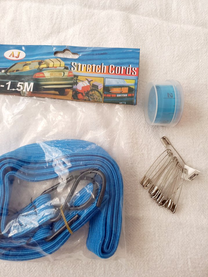 Plastik malzemeden yapılmış, 1.5 metre uzunluğunda renkli elastik mavi esneme ipleri.mezura ve cengelli iğne seti.3 nun fiyatidir.