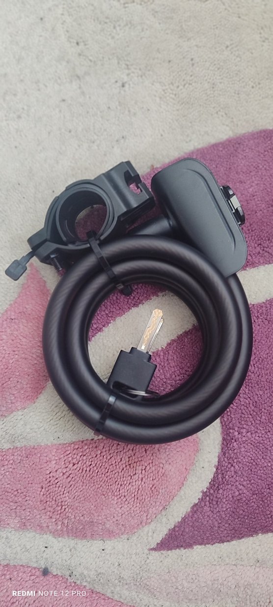 Montaj aparatı ve anahtarı ile siyah sarılmış kablo kilidi. Dayanıklı ve esnek yapıda bisiklet güvenliği sağlar.