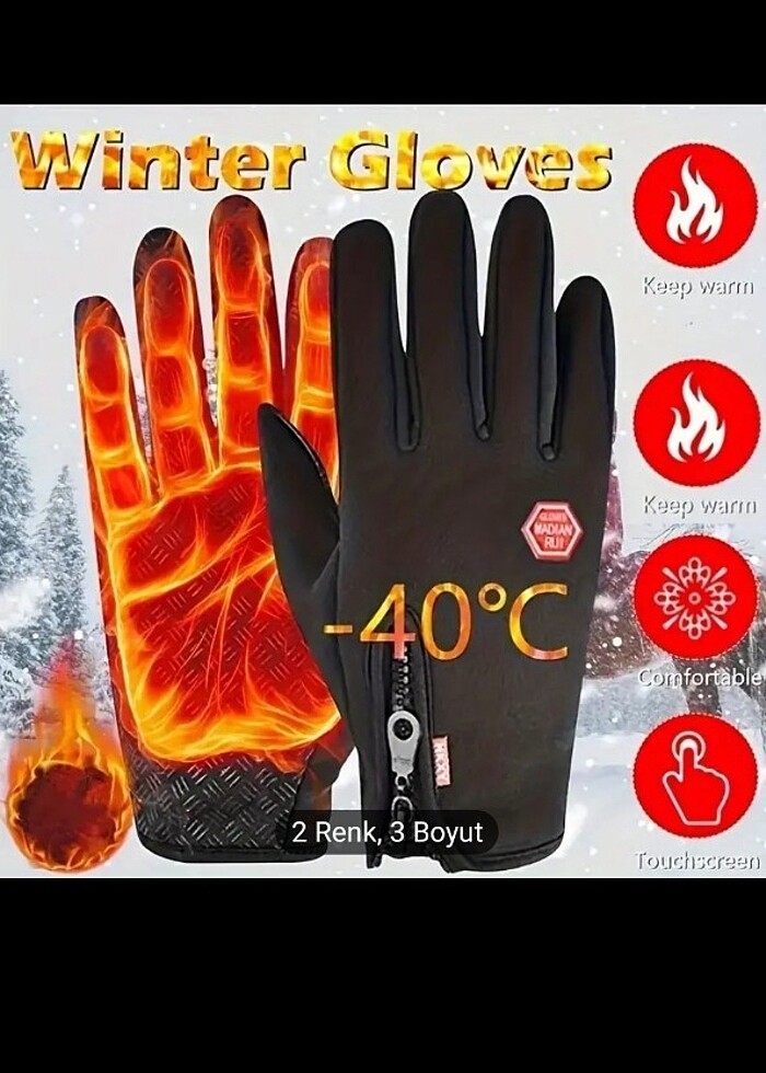 Bisiklet ve Motosiklet Sürüşü için Kış Eldivenleri - Sıcak,su ,Rüzgar Geçirmez, Fermuarlı Kapatma, Kaymaz Tutuş