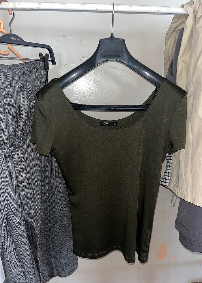 Hiç giyilmedi, bisiklet yaka bluz. Kumaşı çok güzel. 38 beden kadınlar için uygundur.
