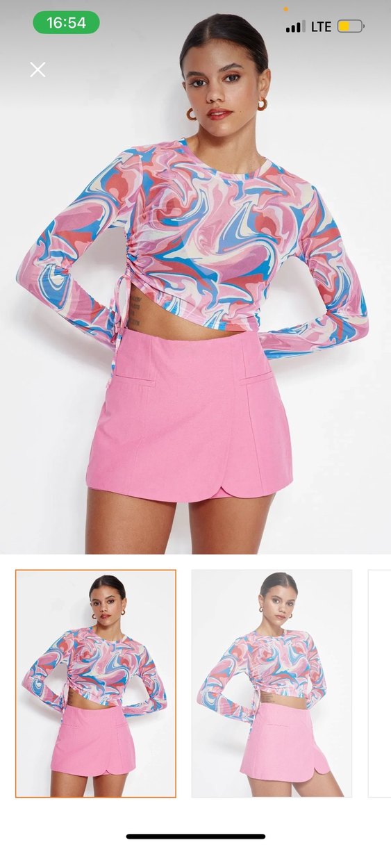 Çok renkli baskılı büzgülü bisiklet yaka basit crop top