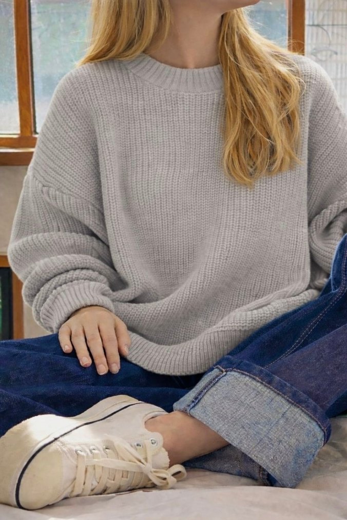 Bisiklet Yaka Gri Oversize Triko Kazak